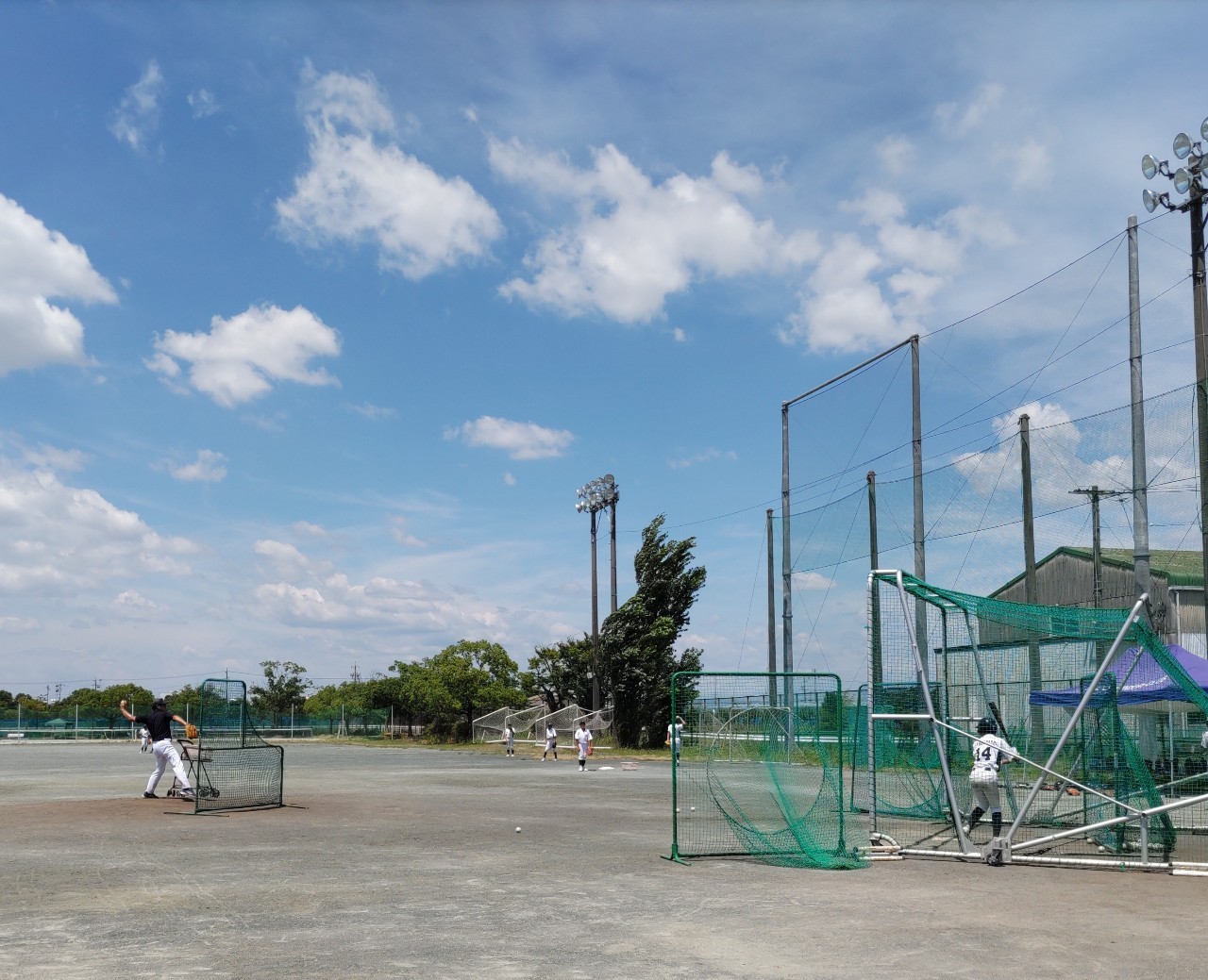朝はラダーなど体の軸を使う練習から始まり、 キャッチボール 1、2年生に別れての内野ノック ロングティー マシンバッティング をしました。