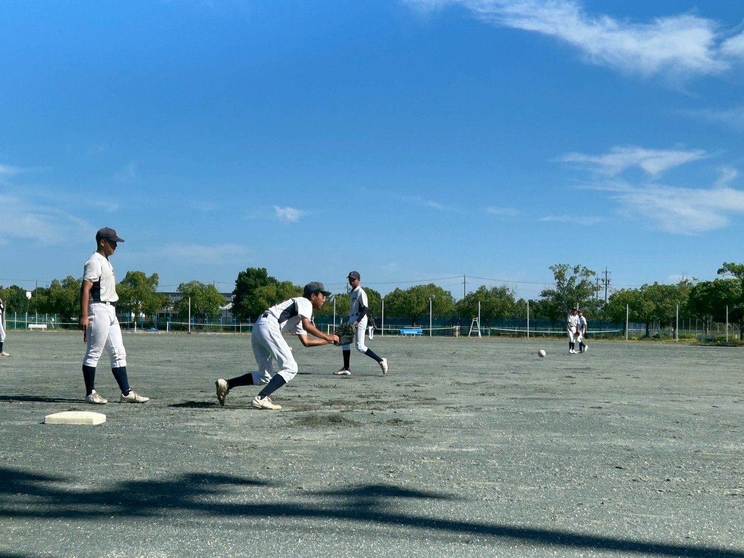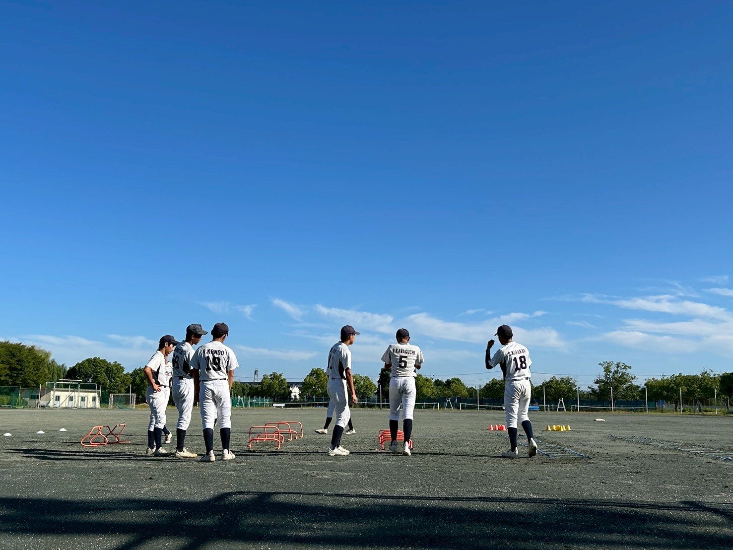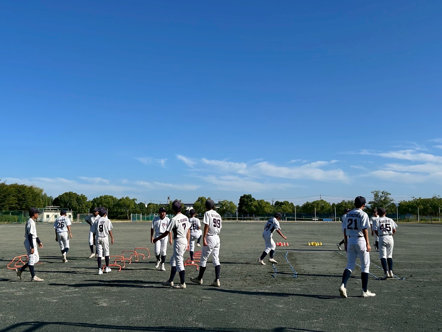 台風一過の突き抜けるような青空が広がったグラウンドで、選手たちの元気な声が響き渡りました。本日はテスト期間中のため、数名の選手が欠席でしたが、参加したメンバーは集中して練習に励みました。