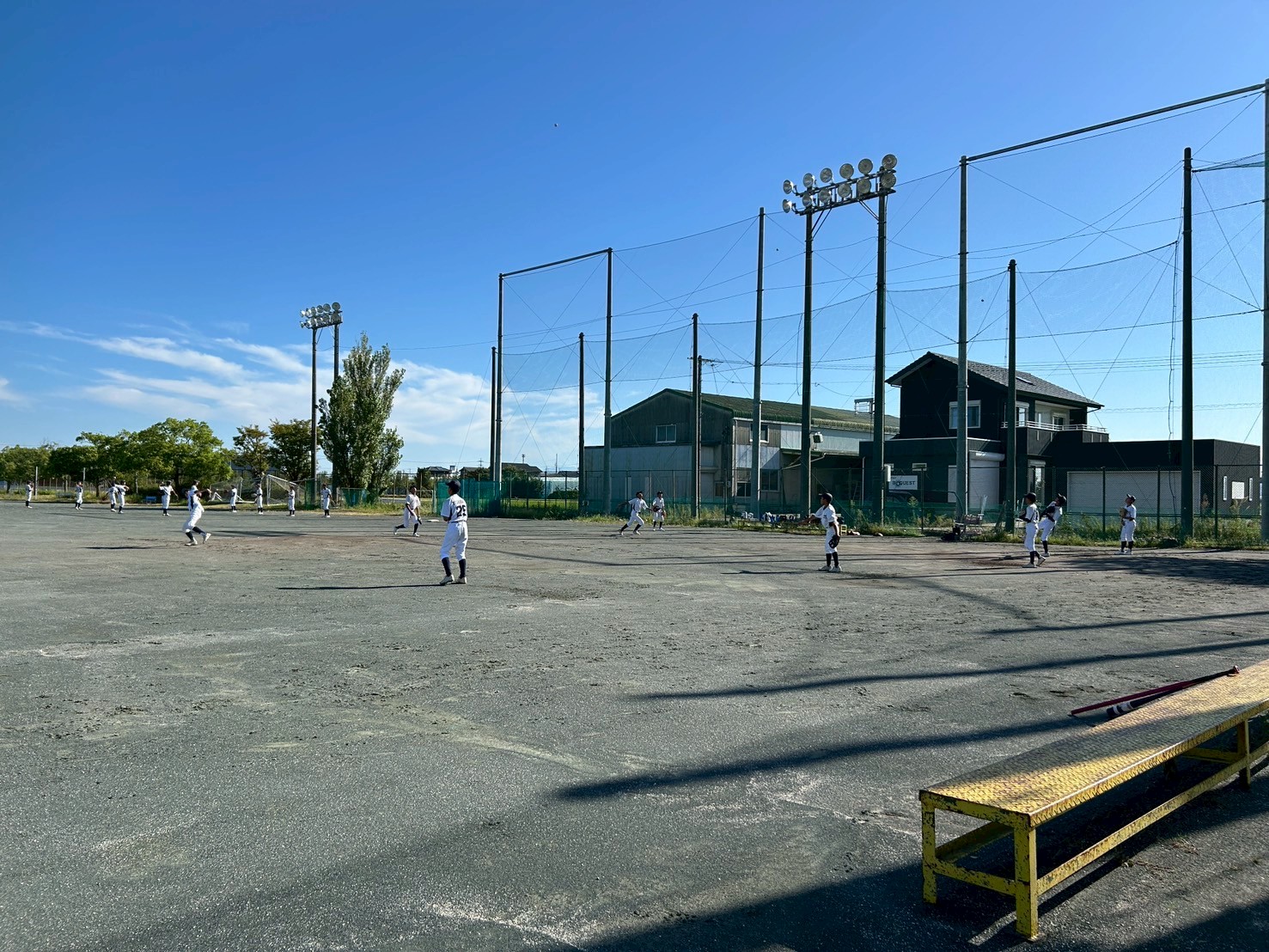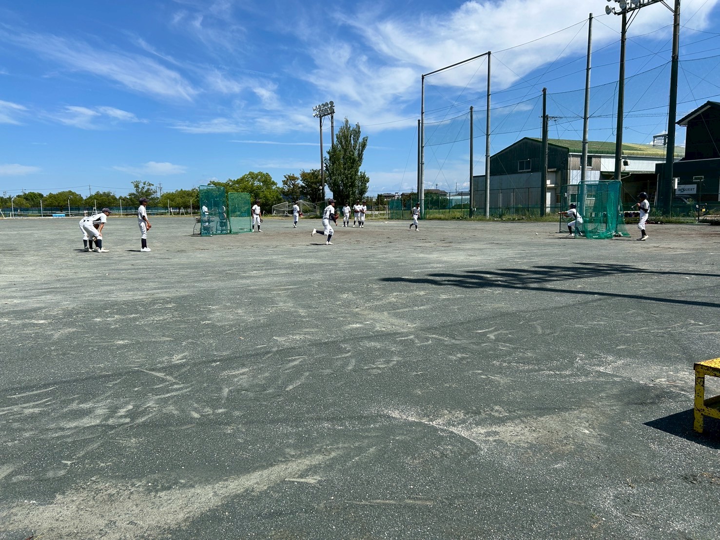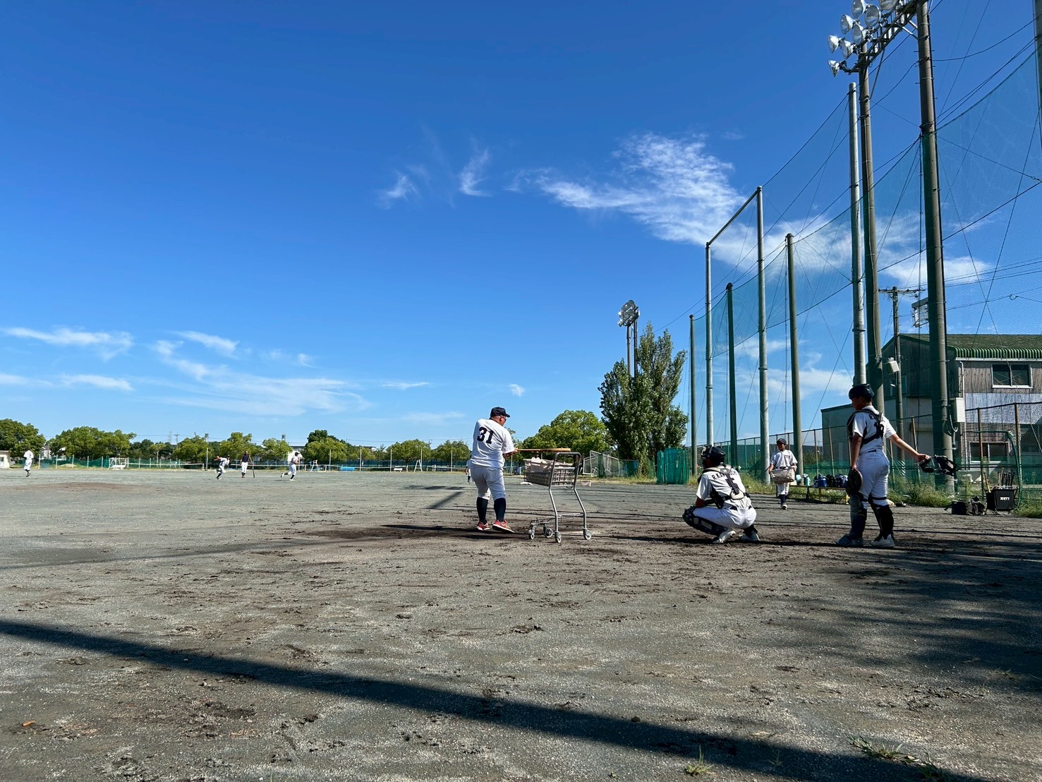 台風一過の突き抜けるような青空が広がったグラウンドで、選手たちの元気な声が響き渡りました。本日はテスト期間中のため、数名の選手が欠席でしたが、参加したメンバーは集中して練習に励みました。