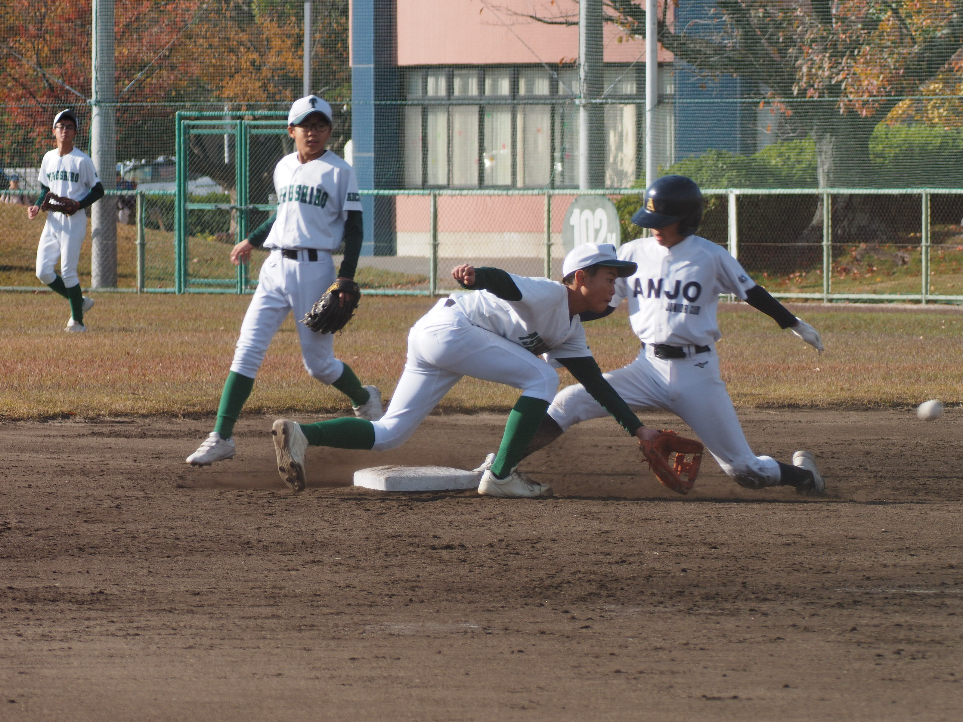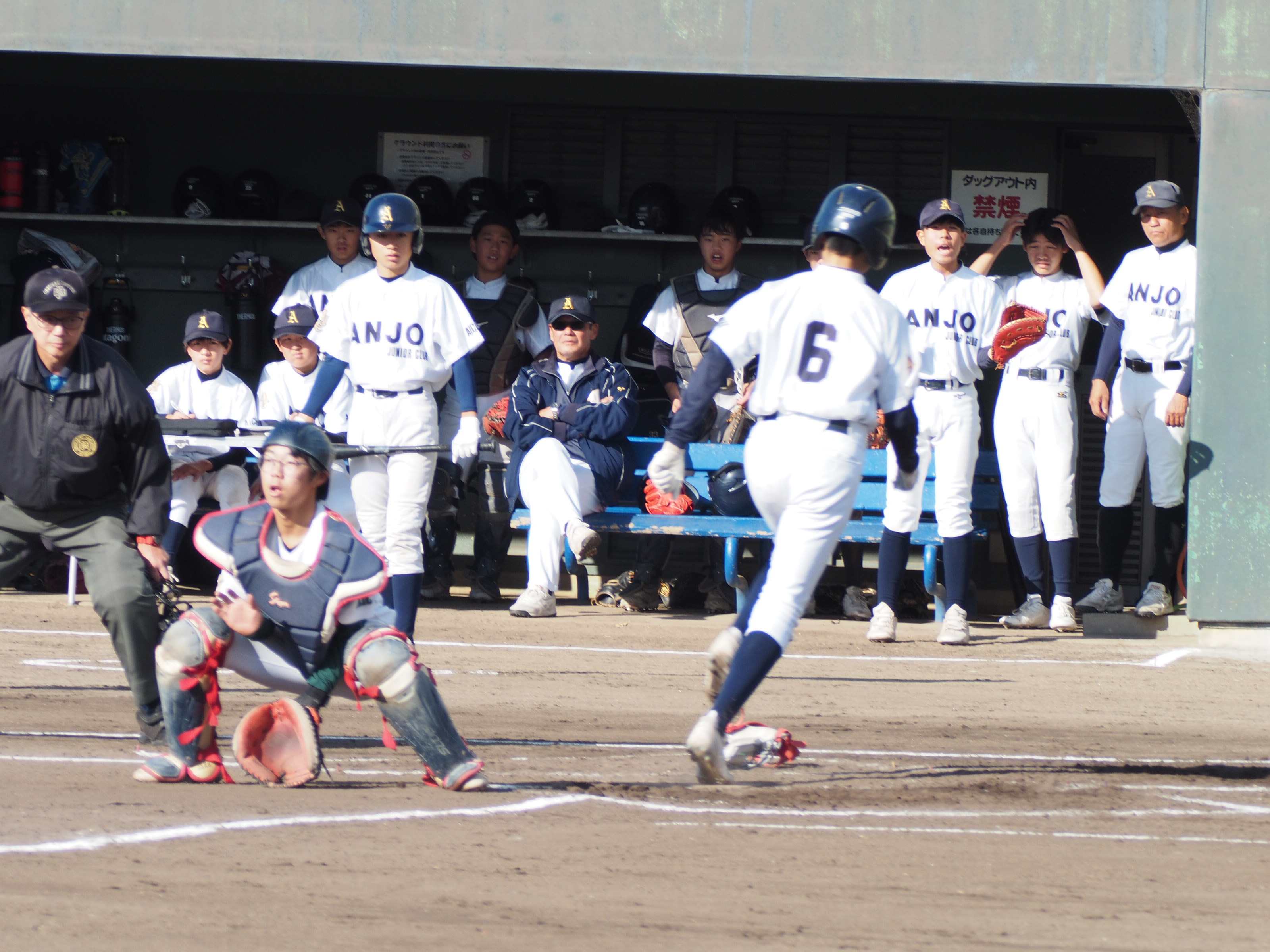 安城ジュニアクラブは2回表に先制、3回表にも追加点を挙げ、試合を優位に進めます。 しかし、粘る鶴城中学校に3回裏に1点を返され、その後は膠着状態が続きます。