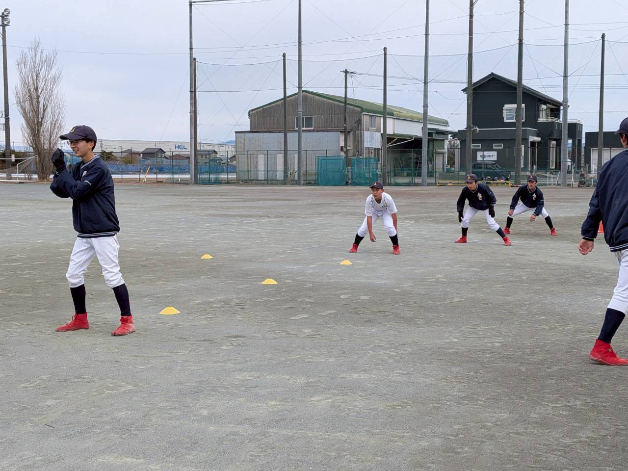 立春を過ぎてもまだまだ空気の冷たい一日でしたが、本日は穏やかな空模様の下、午後練習が行われました。気温は8℃前後と寒さの残る中、選手たちは寒さを吹き飛ばすような元気な声出しでスタートしました。
