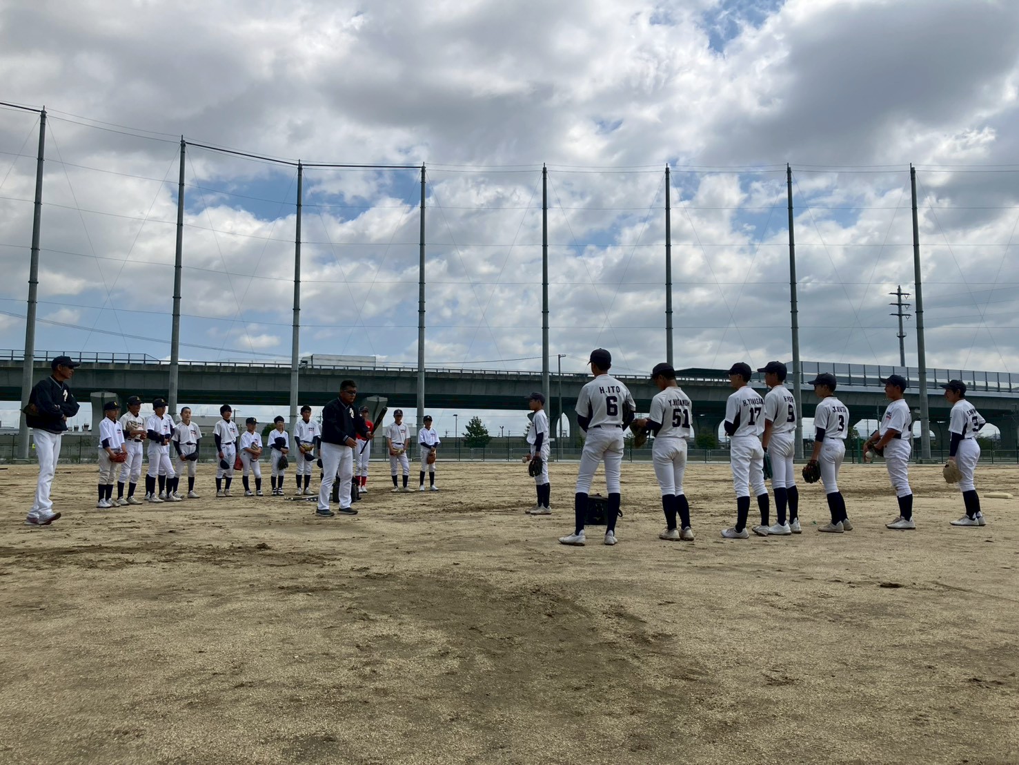 昨日、全国を襲った「春の嵐」。安城市内も激しい雨と強風に見舞われ、今日の練習開催が危ぶまれましたが……。 朝一番、会長から届いたのは、朝日に照らされた**「富士精工グラウンド」**の輝く写真!水はけの良さのおかげで、予定通り練習を実施することができました。